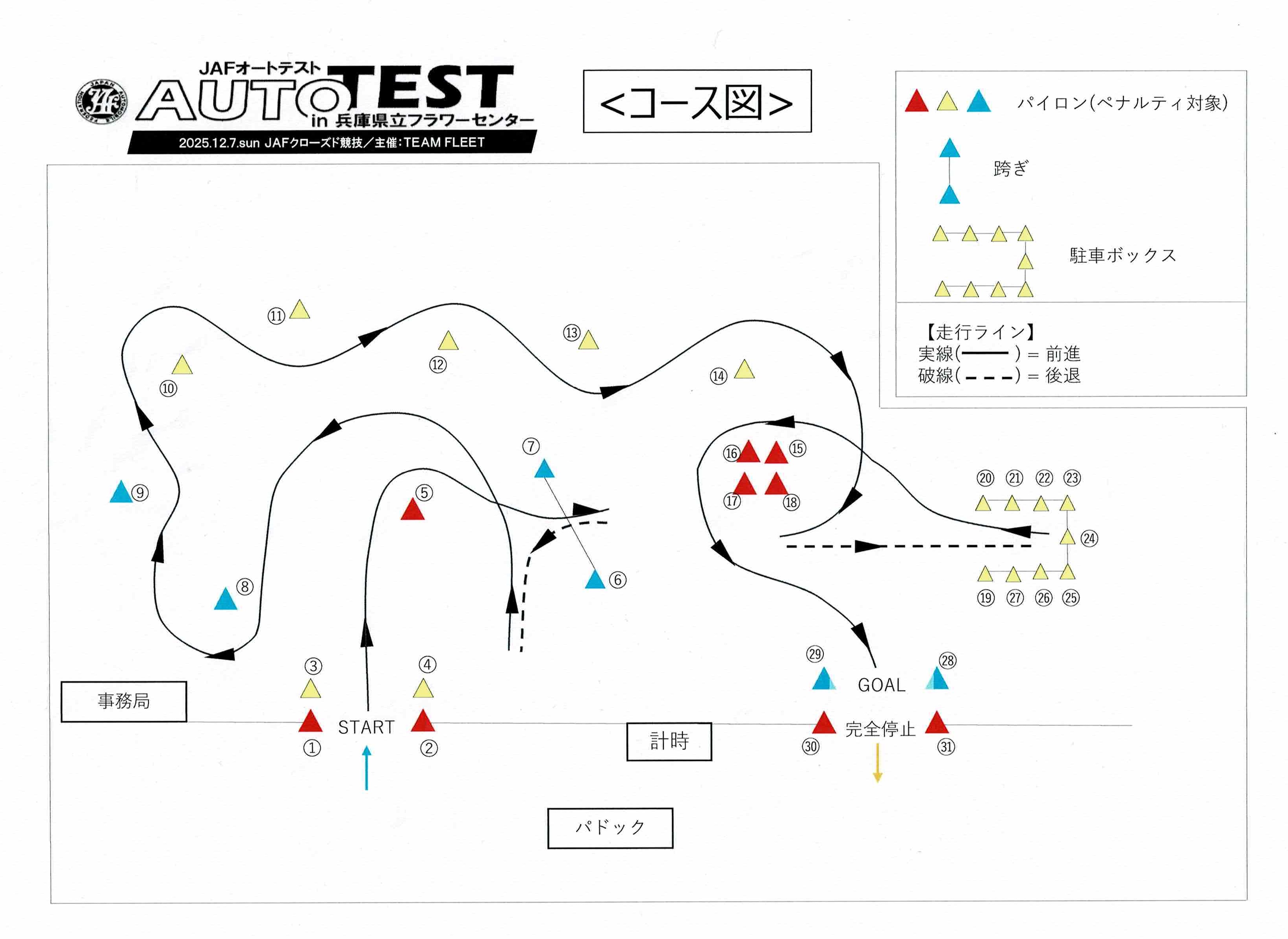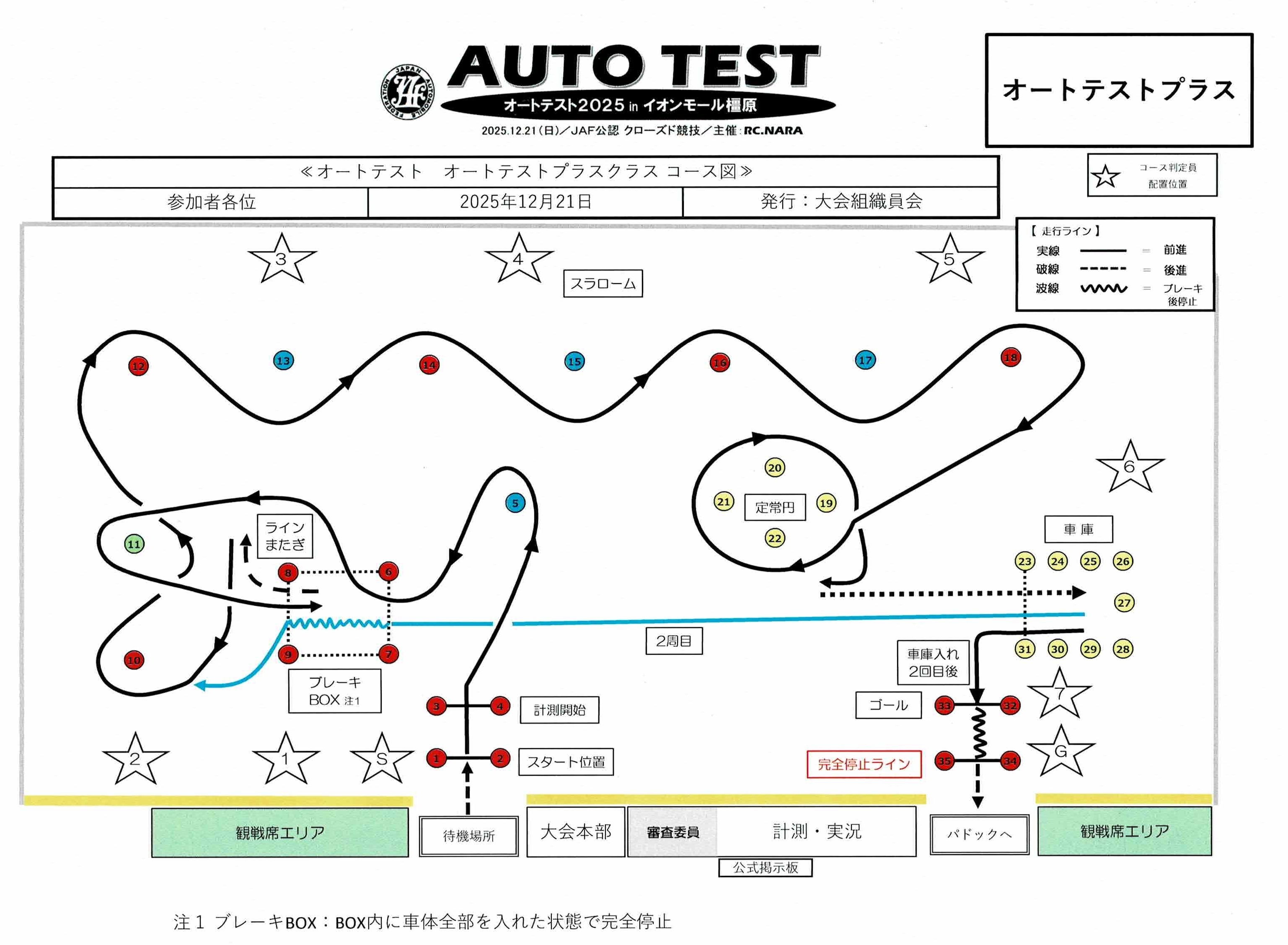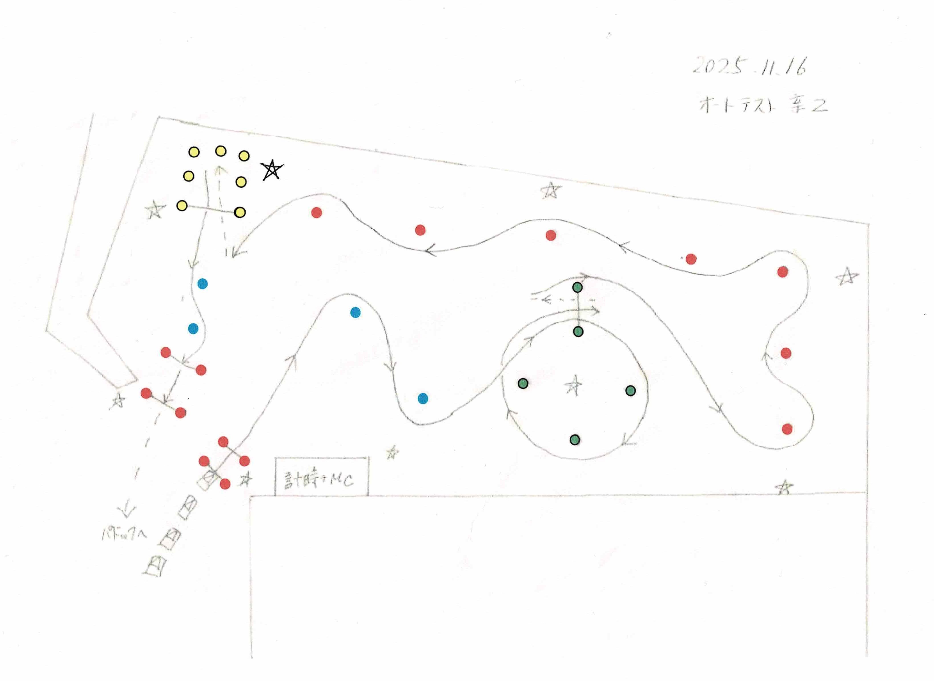 プラス、といってもそんなに特別な走り方になるわけではなく、やはりサイドブレーキを使った小回りは禁止。同じコースをほぼ2周する点と、その途中に一旦停止があるところが一般との違いでした。一旦停止は今回の目玉だったようですが、雨天にもかかわらずミスする人は少なかったようです。フルブレーキングが難しい、といっても、ちょっとだけ余裕を持たせて速度調整しながら入れば簡単なので、大きな違いは生まなかったような気がします。一旦停止は完全停止したかどうかがオフィシャルの感覚になるため、オートテスト仲間内でも「出来たら避けて欲しい」パターンという意見が多く、今回、「プラス」参加者対象の聞き取りがあったので意見しておきました。