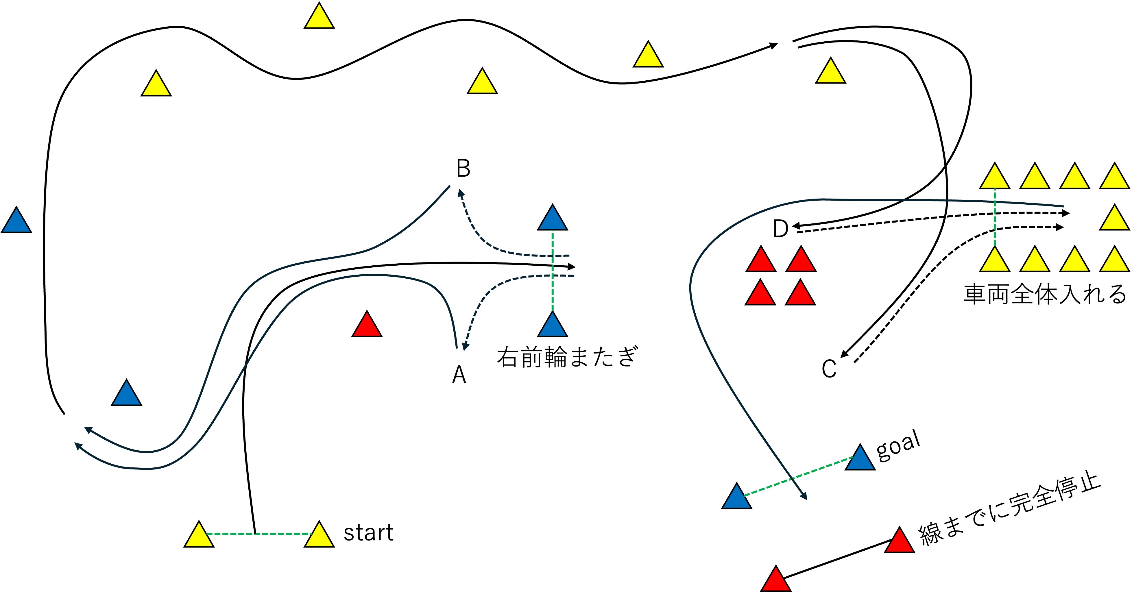 1本目の走行です。実は今回もバック走行、というよりはシフトチェンジに悩まされました。今回のコースでは(「プラス」のクラスでは)3回のバック走行がありますが、練習走行ではそのうち2回でギアが入らずモタモタ。そして上の1本目でも、最初のバックでやはりギアが入らず、開始早々に勝負権を失ってしまいました。早速、意気消沈といったところですが、それでも残りの走行で、2本目に向けて感覚を掴まねばなりません。しかし、集中が切れたというか、荒い走りになってしまい、パイロンのヘリを3回も踏んでいます(うち2回は同じパイロンで、全く同じようにパイロンが後ろへ飛んでいます・・)。どうもやはり運転席から遠い側のリアタイヤの車両感覚がよくないようです。