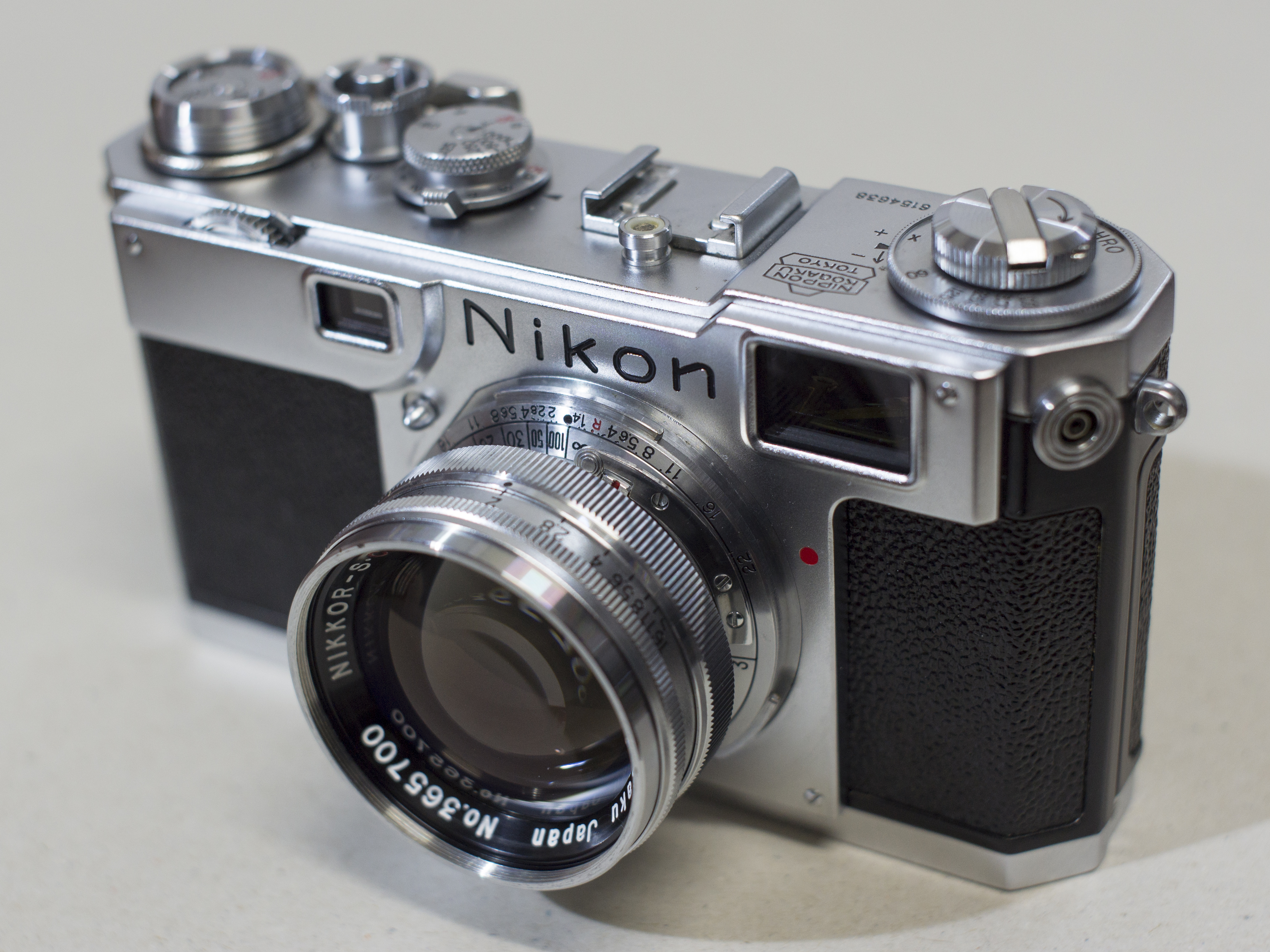 普通のカメラでは,レンズはボディに対してまっすぐ(直角に)付いていますが,これの方向を変えます.すると,カメラに対して正面を向いた面でなく,傾いた面に対してピントをあわせることが出来ます(シャインフルークの法則といいます).クリックして拡大すると,カメラの右肩から左肩までピントがあっているのがわかります.普通はもっとレンズの絞りを絞り込んで撮影しますが,今回は分かりやすいように絞りを開いてピントを浅くしています.しかしまだカメラの下すぼまりは残っていますので,今度はレンズをカメラに対して下へ平行にずらします.