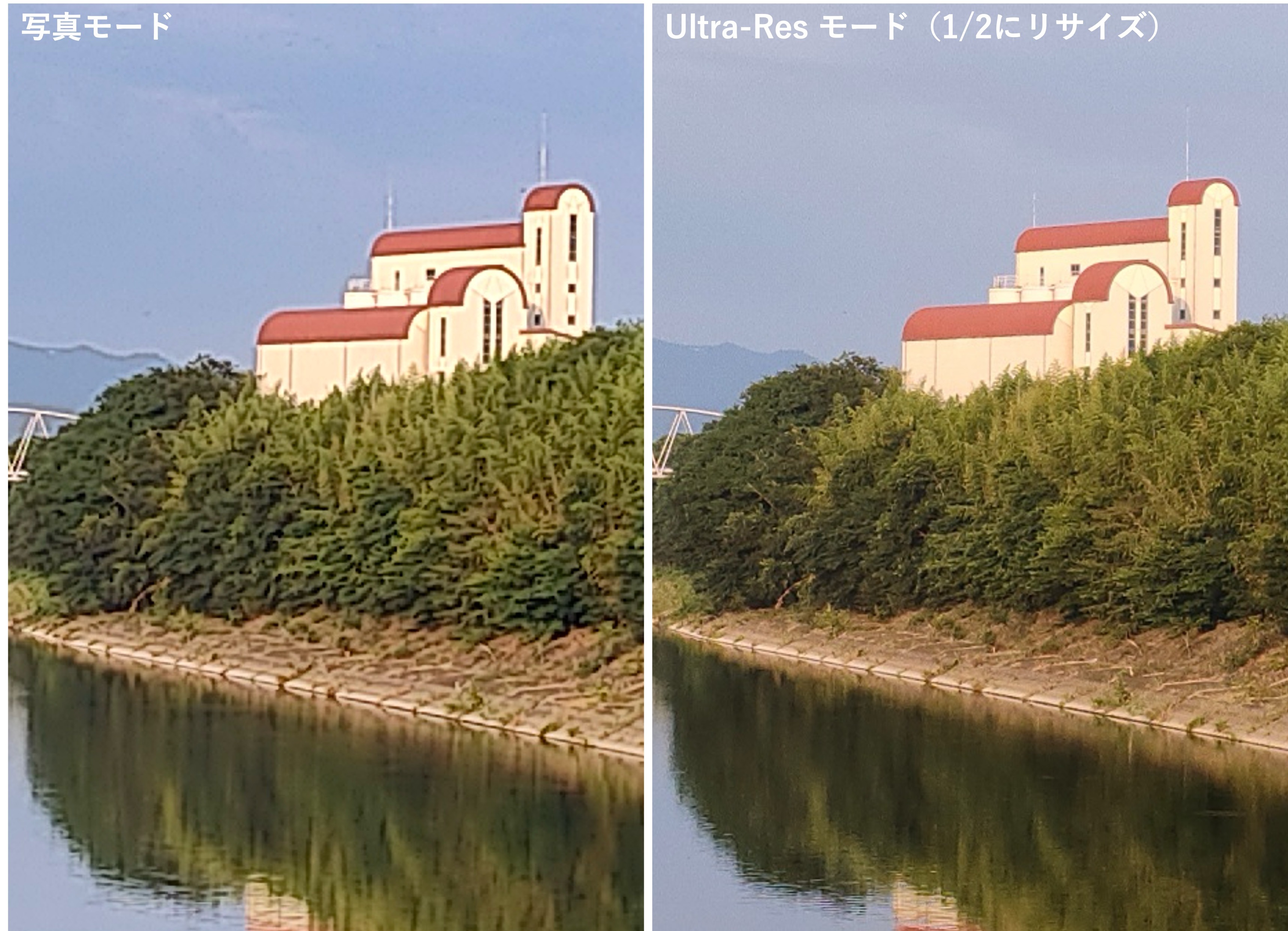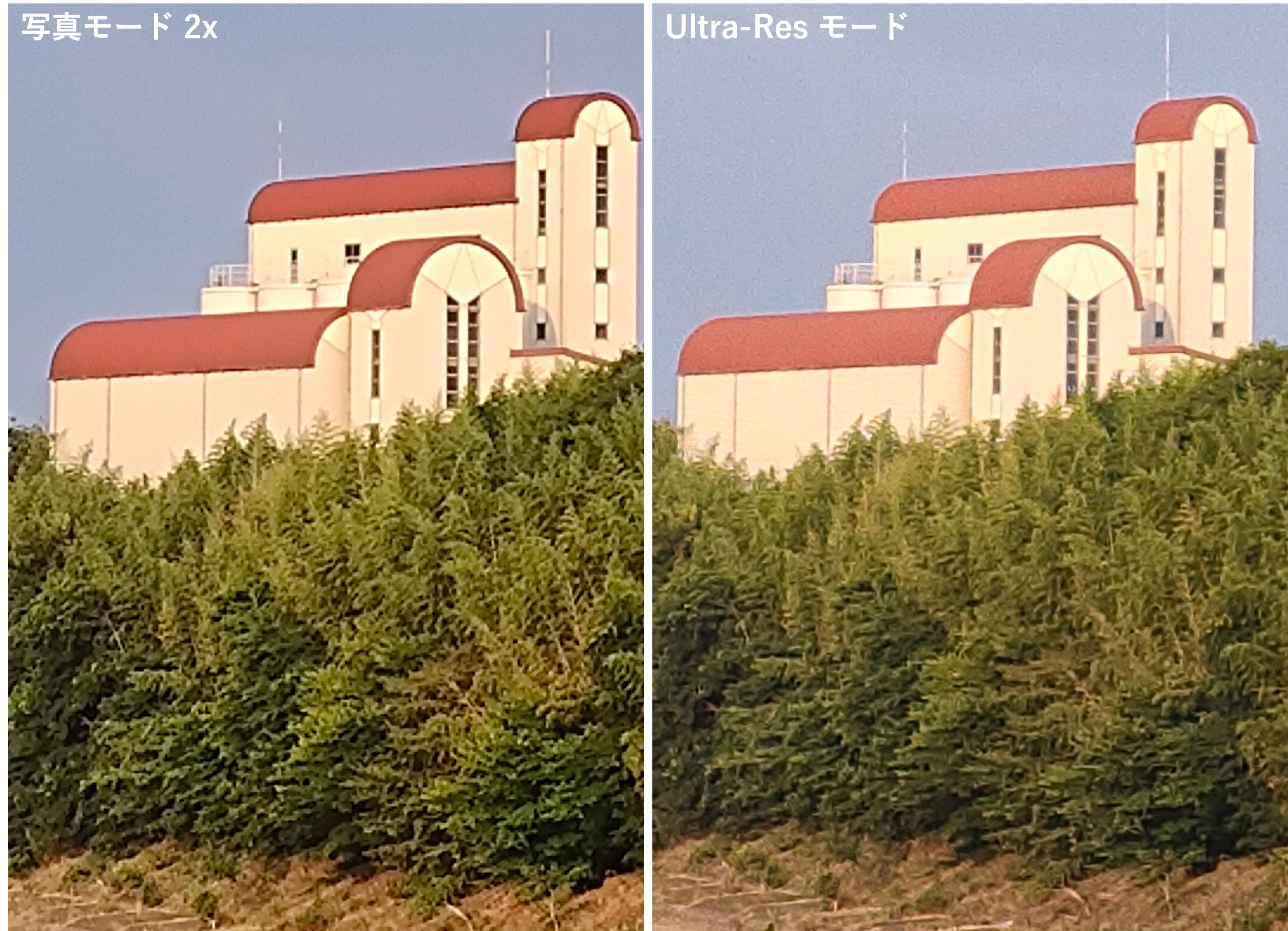 次に「スマート高解像度on」のときの写真モードと、Ultra-Resモードの画質とを比べてみます